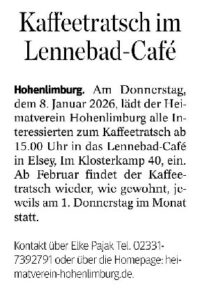 • Do., 05.02.2026 | Kaffeetratsch im Lennebad-Café