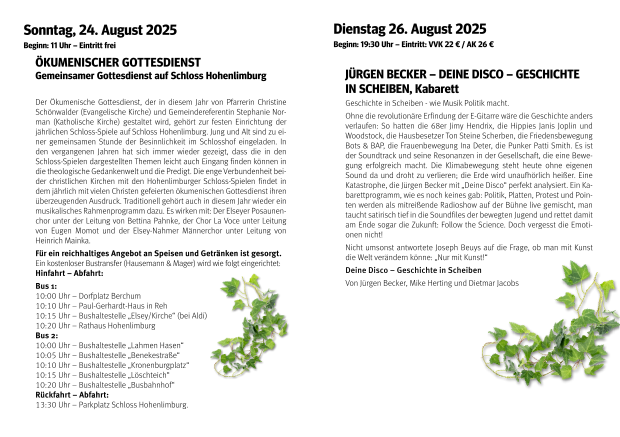 „MenschSein“ lautet das Motto der Schloss-Spiele 2025. Freitag, 22. August bis Sonntag, 7. September 2025.