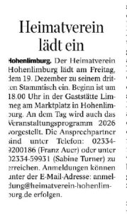 • Fr., 20.02.2026 | Stammtisch Heimatverein Hohenlimburg